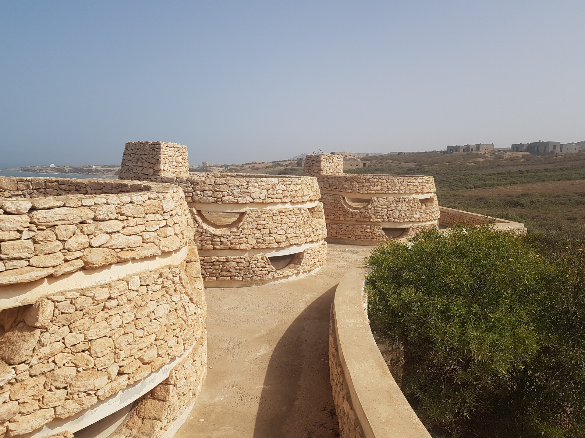 Situé à proximité de la ville d'Essaouira cette villa de vacances est implantée dans un site vierge avec vue sur la mer. Elle reprend l'esprit des maisons traditionnelles locales en maçonneries de pierres sèches.