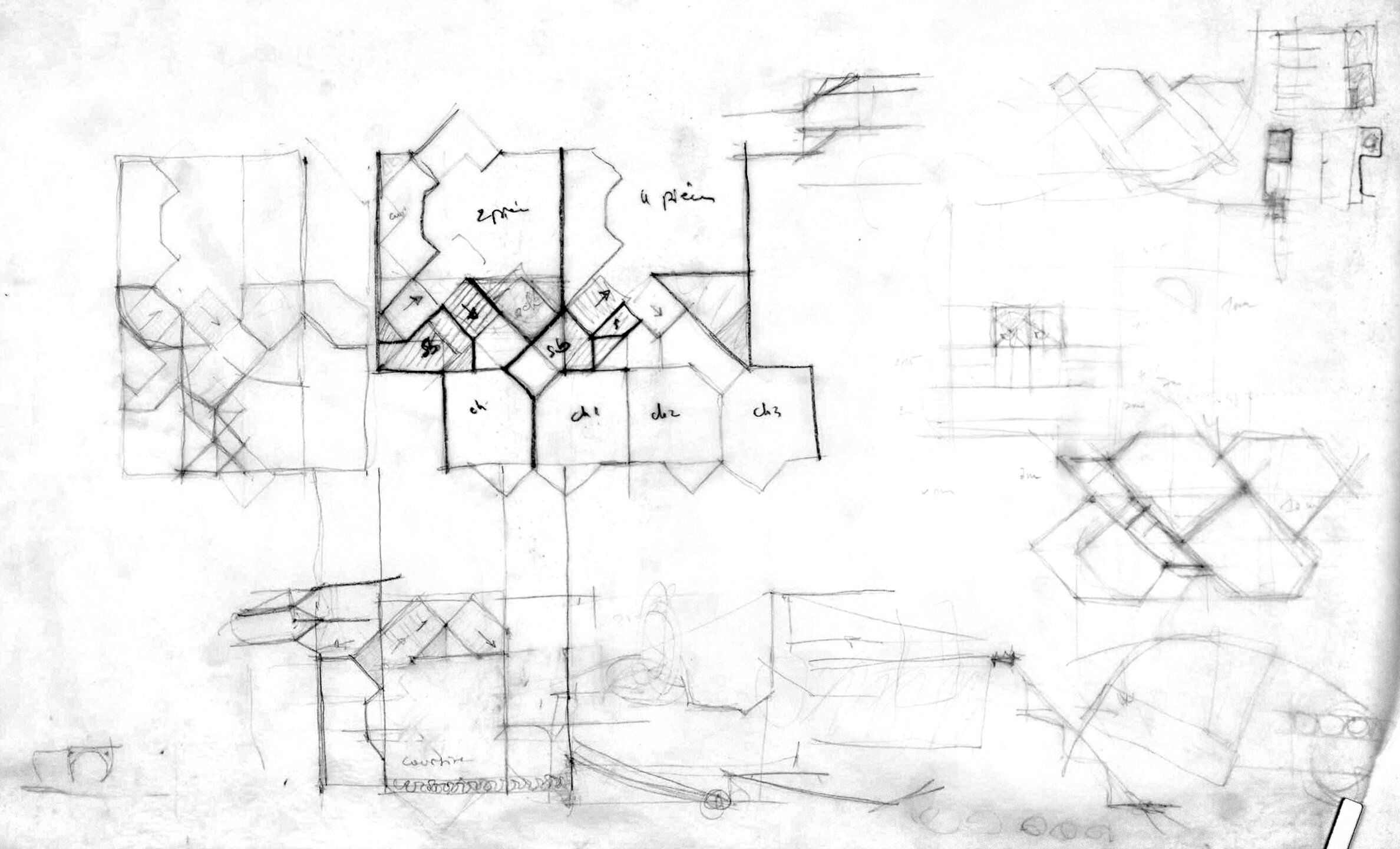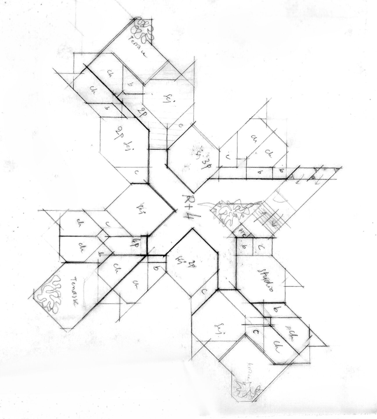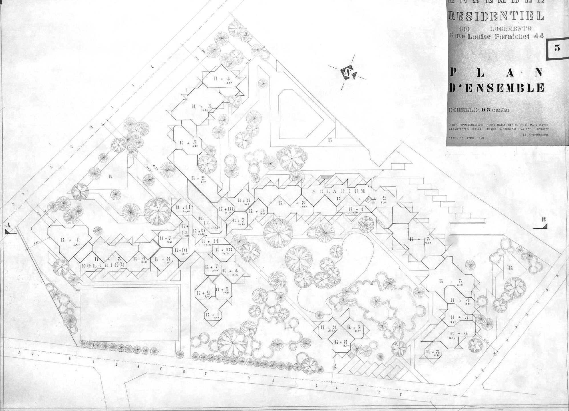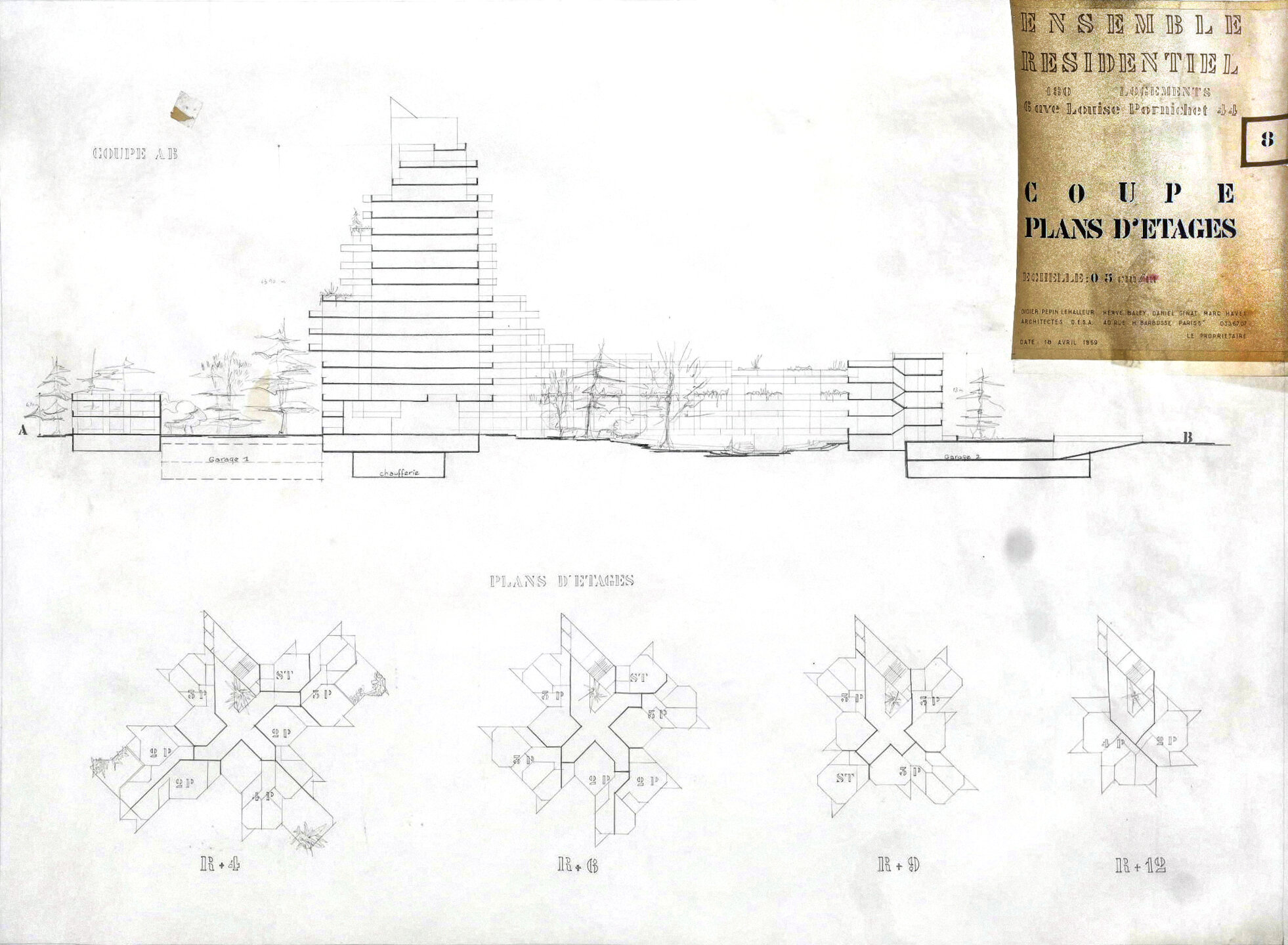 La conception de ce projet repose sur la mise en place d'un système constructif modulaire. A l'image de l'arbre, les circulations verticales sont la colonne vertébrale, le tronc du bâtiment, les circulations horizontales en coursives les branches et les plateaux logement les feuilles. Chaque plateau est, soit un séjour, soit deux chambres et se prolonge par un balcon. Ces plateaux sont séparés par des noyaux techniques verticaux logeant cuisine, salle de bains ou salle d'eau. Par ce jeu de de verticales et d'horizontales les façades expriment le porté du portant. Ce principe de l'arborescence sera repris quelques années plus tard pour un projet de HLM pour la ville de Bagnolet.