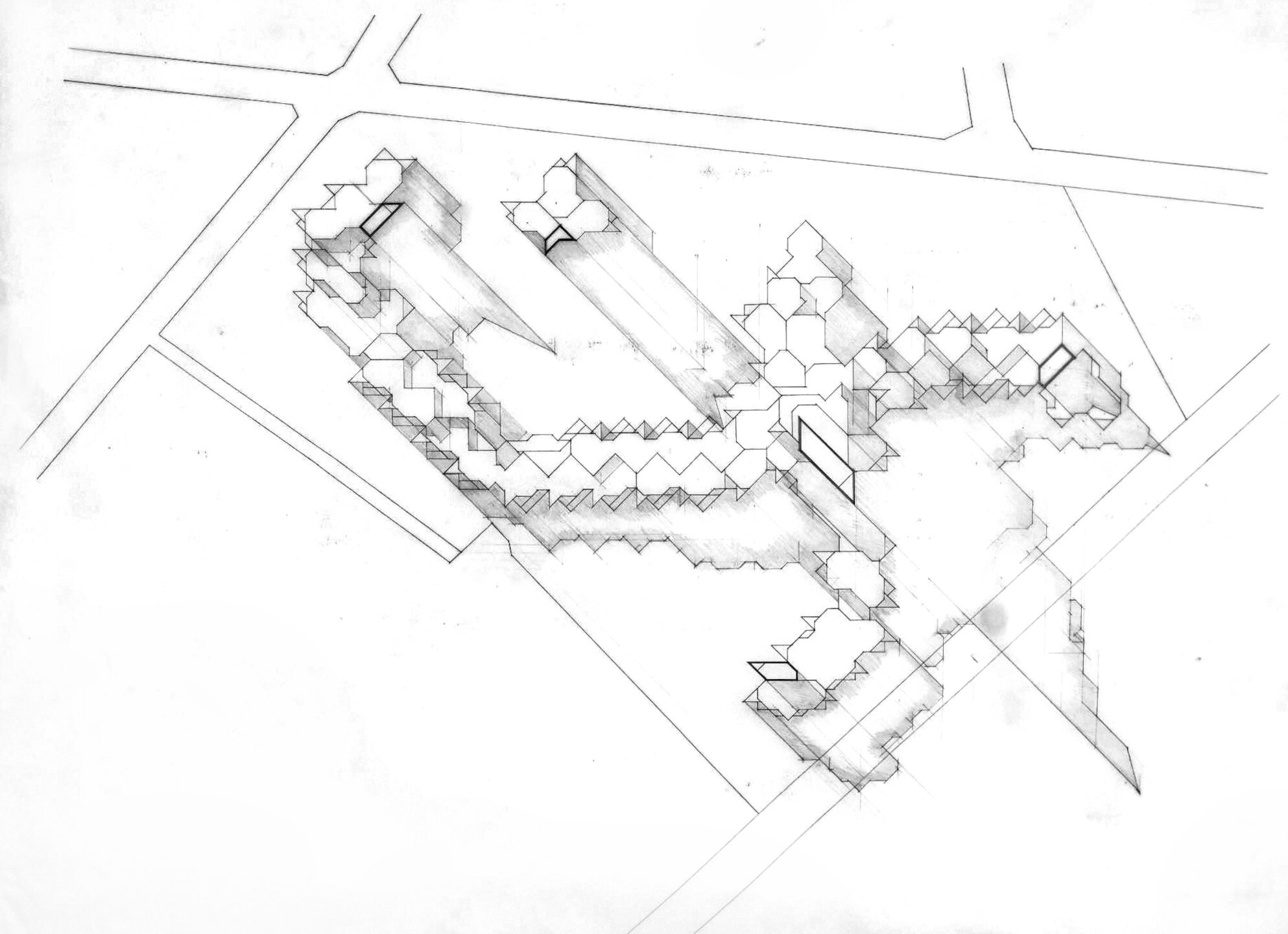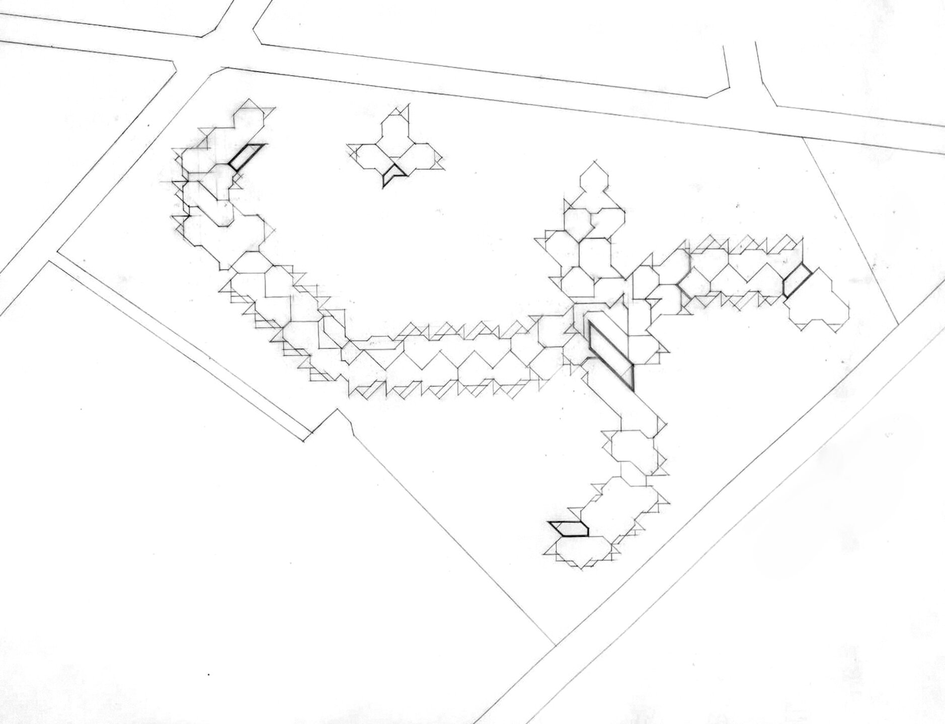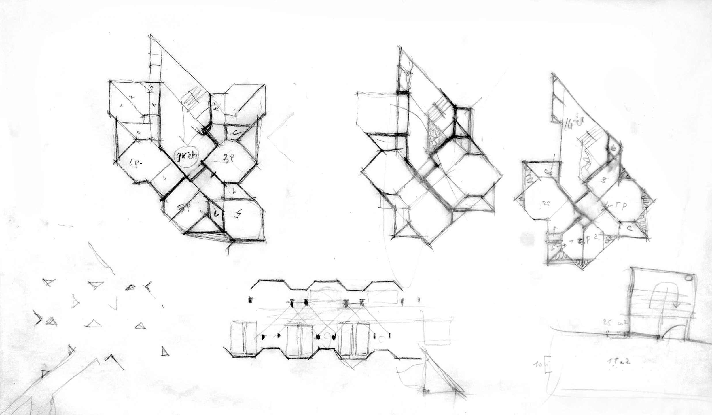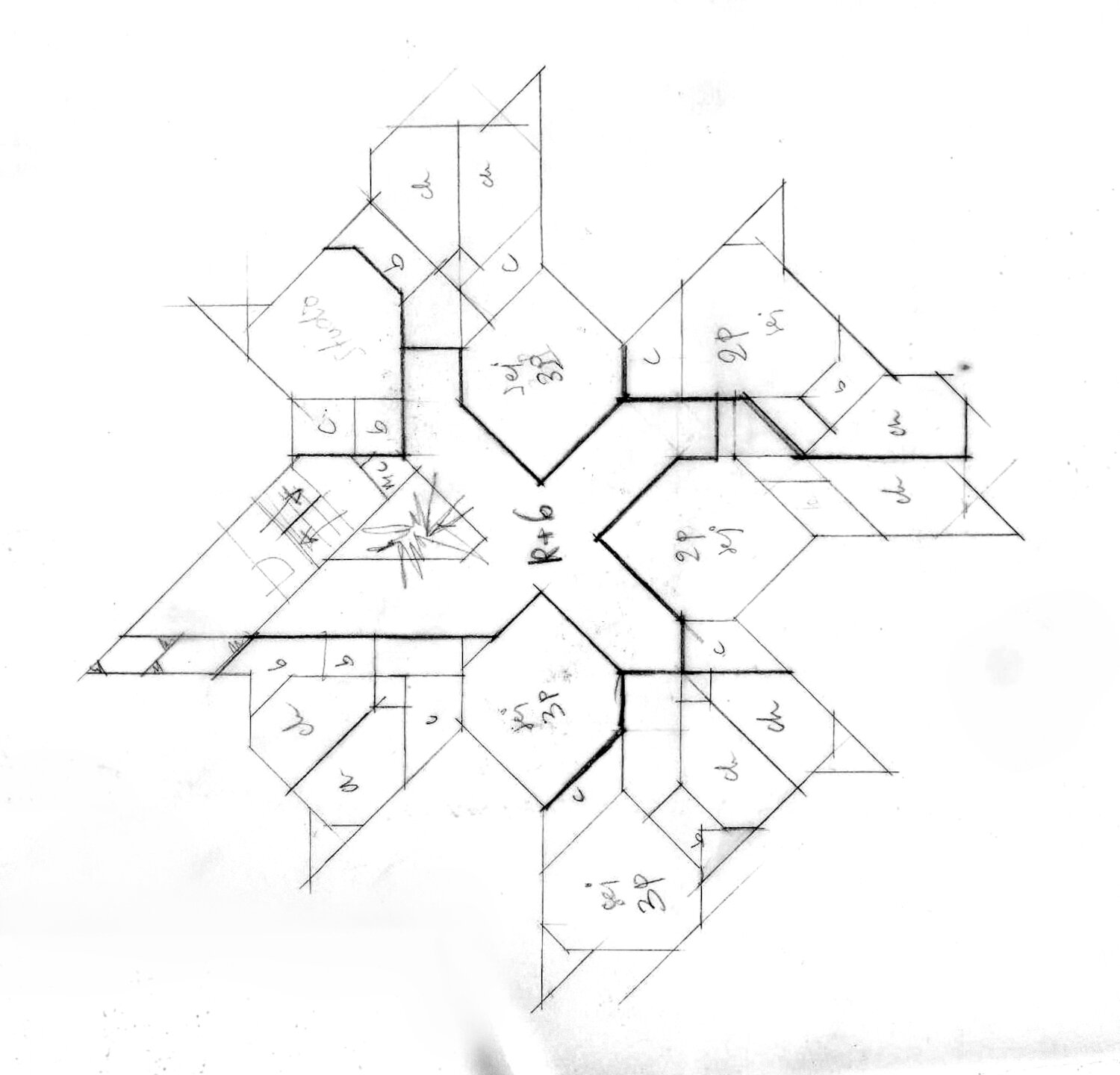La conception de ce projet repose sur la mise en place d'un système constructif modulaire. A l'image de l'arbre, les circulations verticales sont la colonne vertébrale, le tronc du bâtiment, les circulations horizontales en coursives les branches et les plateaux logement les feuilles. Chaque plateau est, soit un séjour, soit deux chambres et se prolonge par un balcon. Ces plateaux sont séparés par des noyaux techniques verticaux logeant cuisine, salle de bains ou salle d'eau. Par ce jeu de de verticales et d'horizontales les façades expriment le porté du portant. Ce principe de l'arborescence sera repris quelques années plus tard pour un projet de HLM pour la ville de Bagnolet.