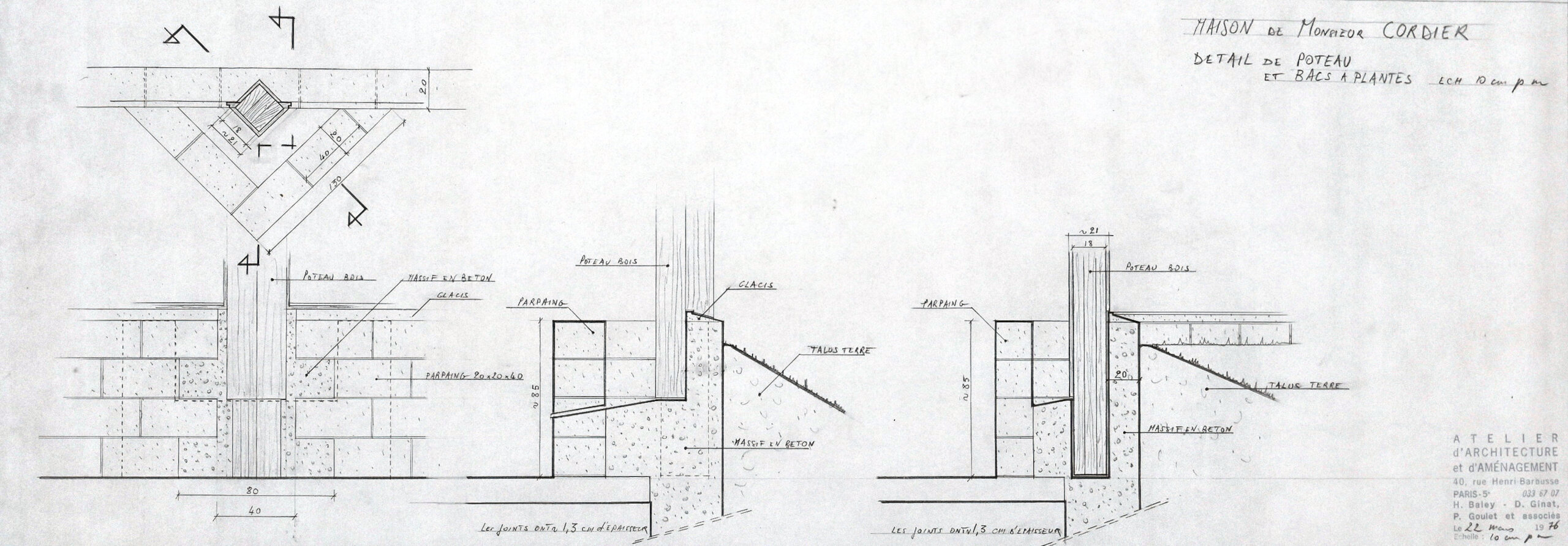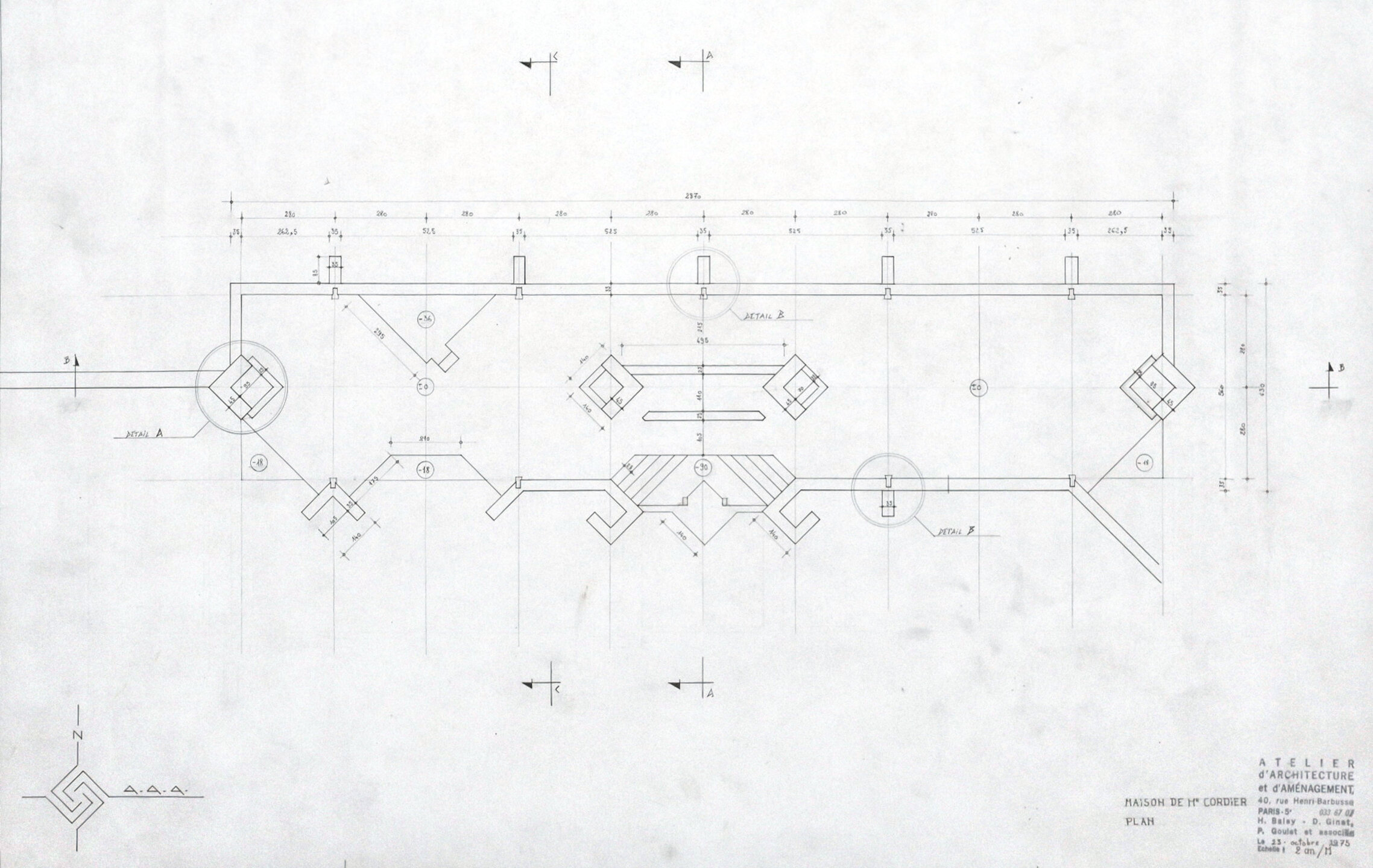 Associé avec Gilbert Cordier, professeur d'Histoire de l'Architecture à l'ESA, ce projet initialement pour un client, le projet fut abandonné et le terrain racheté pour son propre compte. Il en confia l'étude à Hervé Baley qu'il considérait comme l'un des architectes les plus créatif de son époque. Ce projet reprend en clin d'oeil les motifs des toitures de l'Hotel-Dieu de Beaune. A remarquer la conception symétrique rare dans les projets d'Hervé Baley.
